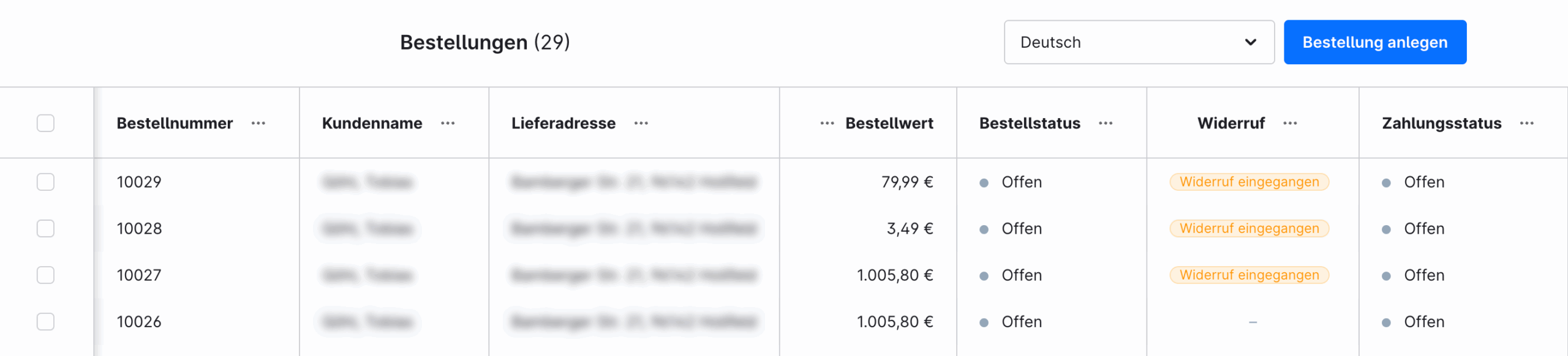 Als Verkäufer sehen Sie eingegangene Widerrufsformulare direkt im Shop-Backend.